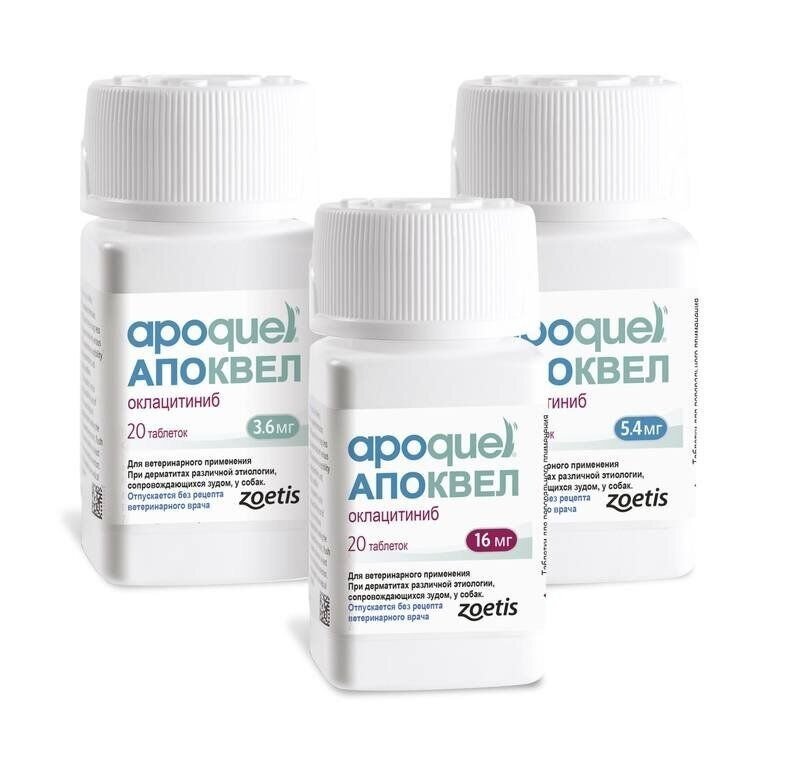 • Apoquel is a non-hormonal drug for dogs, used for dermatitis of various etiologies, which are accompanied by itching. The American company “Zoetis Inc” created the drug Apoquel, which deservedly occupies a leading position among drugs for eliminating itching in dogs, regardless of its etiology. The innovative formula of the drug allows you to eliminate itching in case of dermatitis and allergies in the shortest possible time. Reduction of itching is observed within 4 hours after the first dose of the drug and the antipruritic effect will last at least a day! l is a non-hormonal drug, the main active ingredient of which is oclacitinib, which inhibits the function of cytokines that cause itching and inflammation of the skin. eliminates itching caused by dermatitis, environmental allergies таблеток.